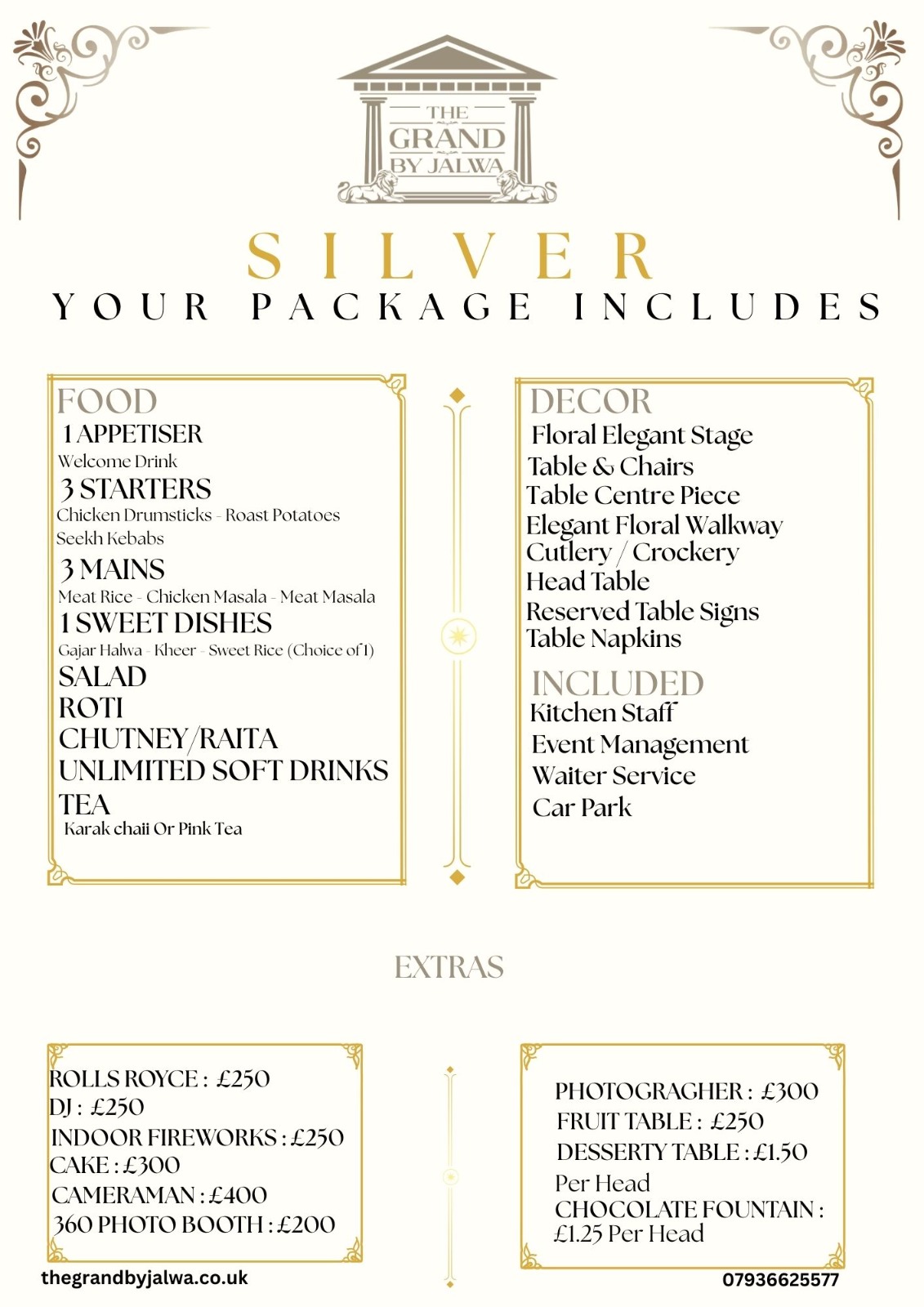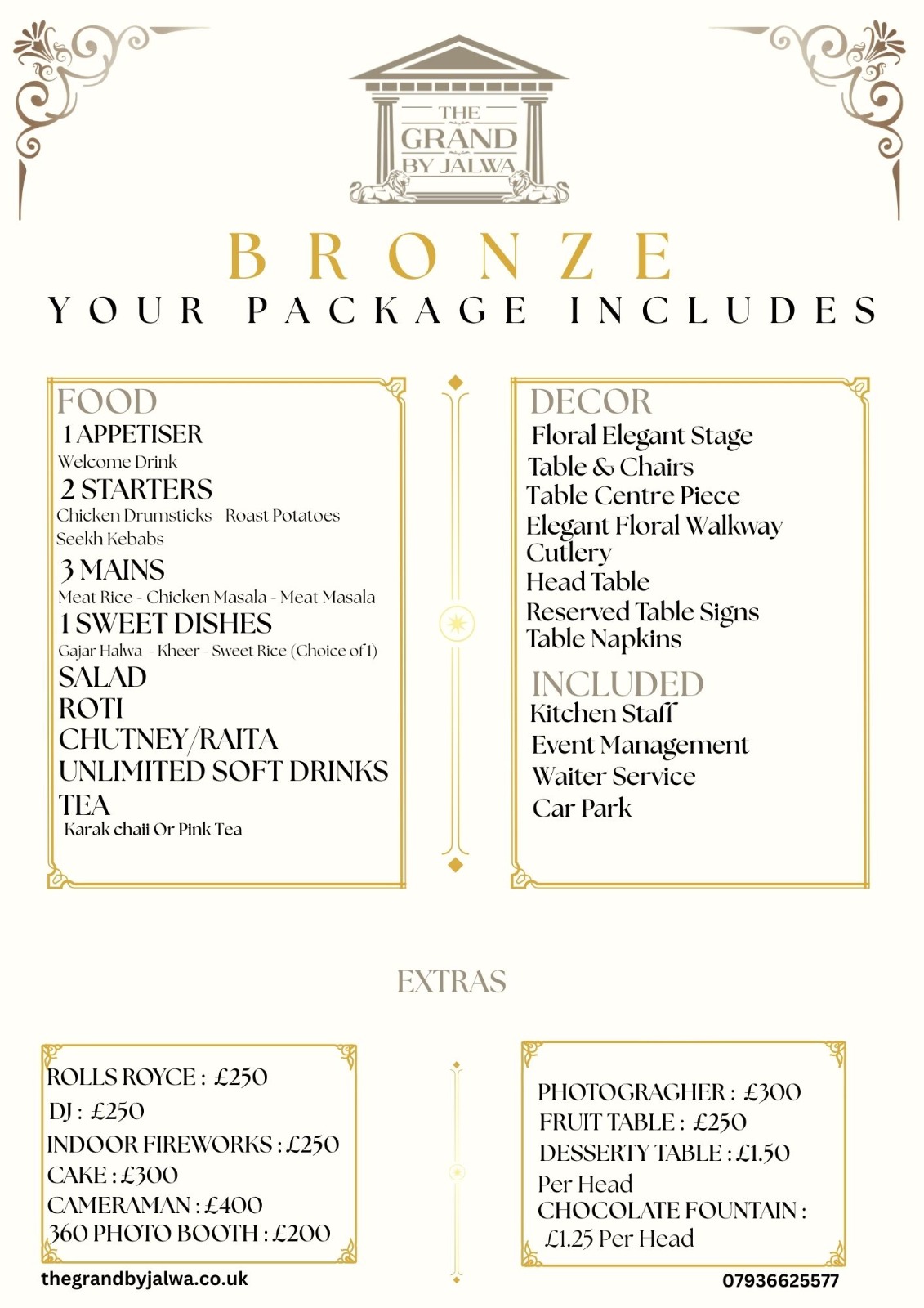 Ready to discuss which package perfectly fits your vision and budget? Schedule your consultation today by calling 07936625577 or emailing thegrandbyjalwa1@gmail.com. Let us create a transparent, stress free planning experience for your special day.